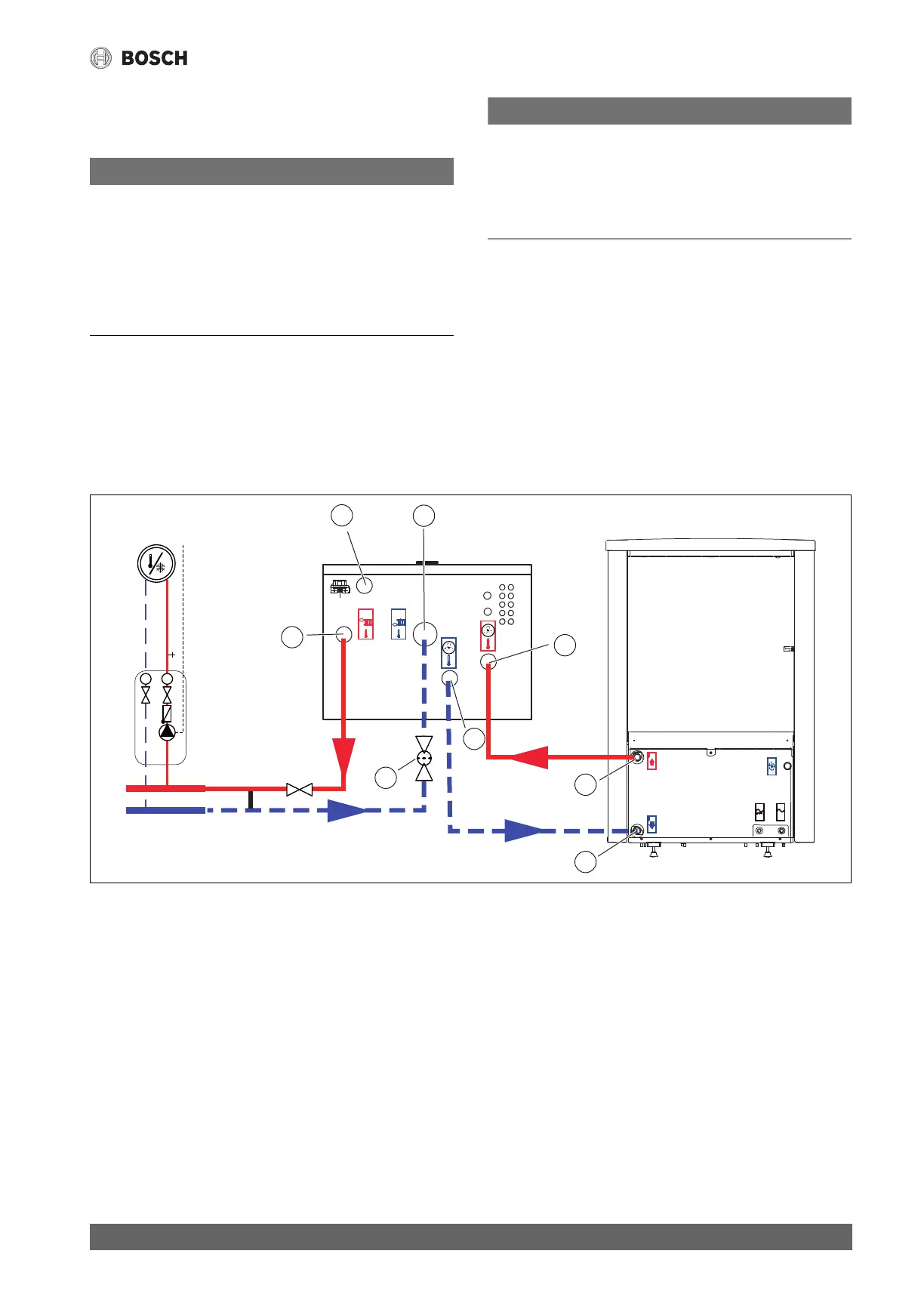 Fig. 6 Connection of the indoor unit with electric booster heater to the heat pump and heating system