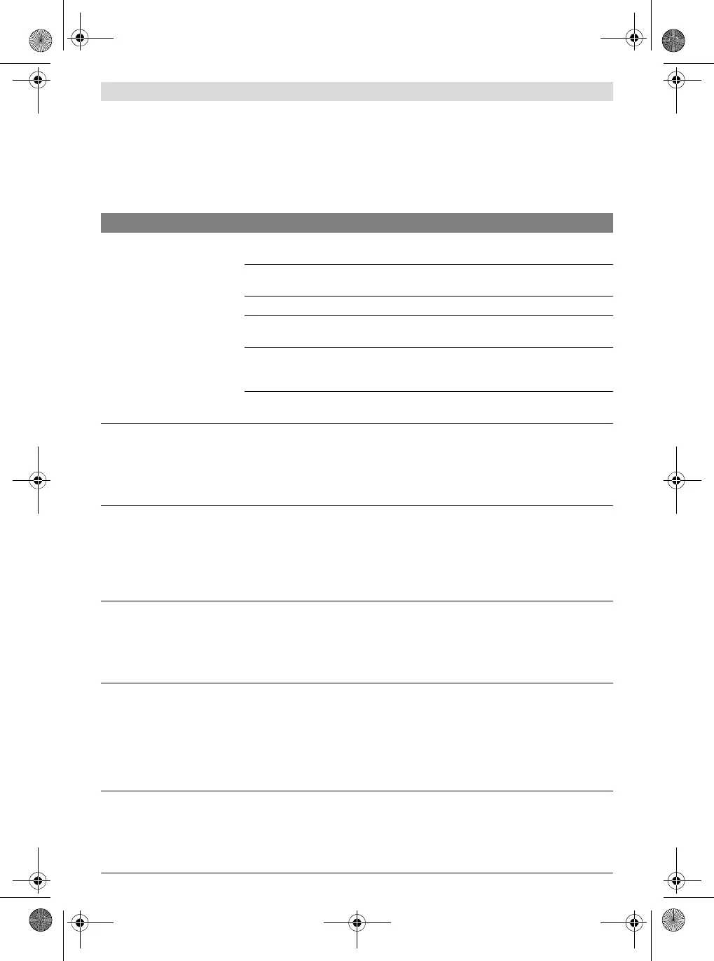 мерките, описани в таблицата, се обърнете към оторизиран сервиз за електроинструменти на Бош.