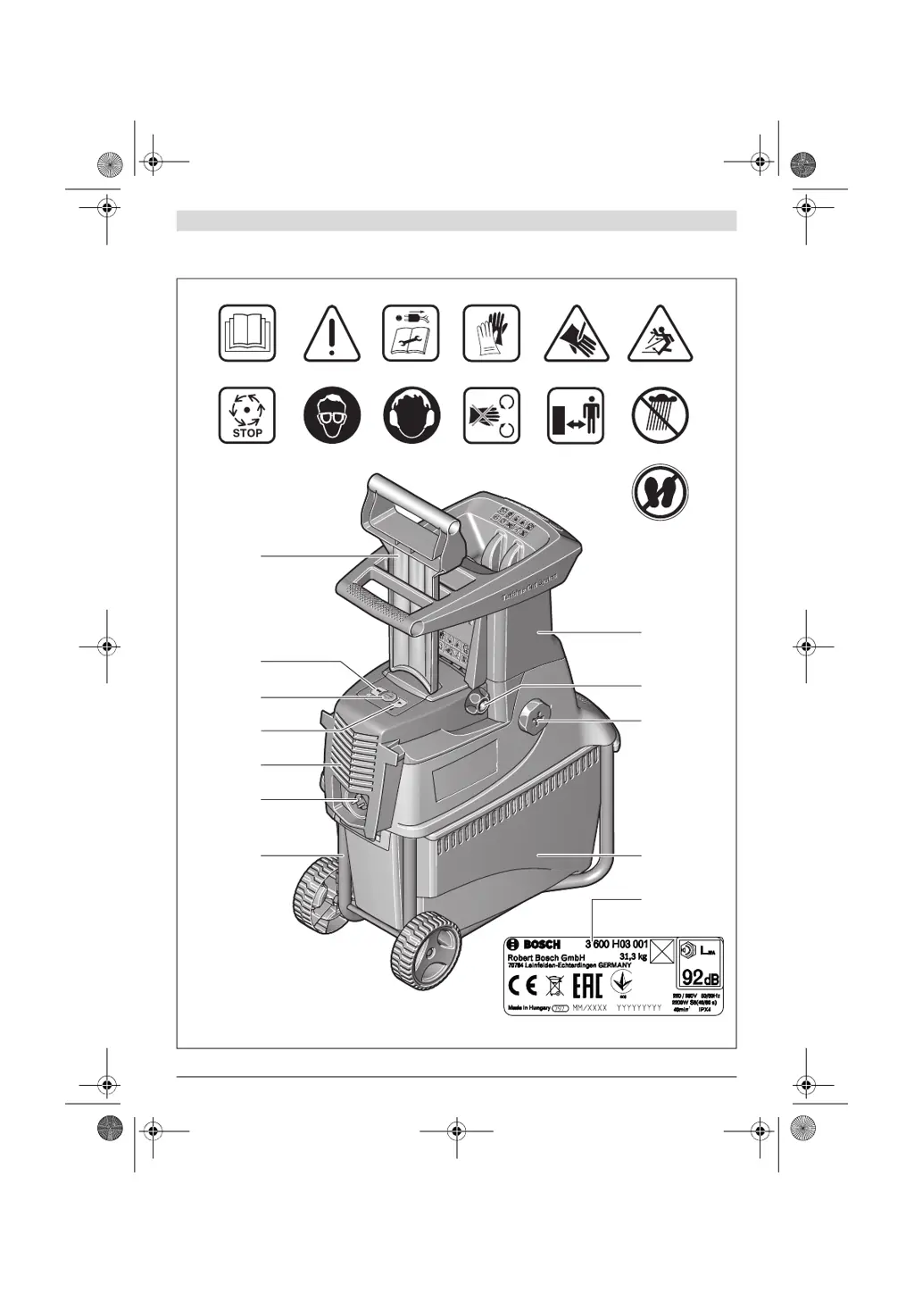 If your Bosch Lawn and Garden Equipment machine fails to operate, there are several potential causes. Ensure the collection box and chute assembly are correctly fitted. Check the mains socket by trying another one. Inspect the extension cable for damage and replace it if necessary. If the machine is overheated, wait for it to cool down. Finally, check the fuse and replace it if it's faulty or blown.
