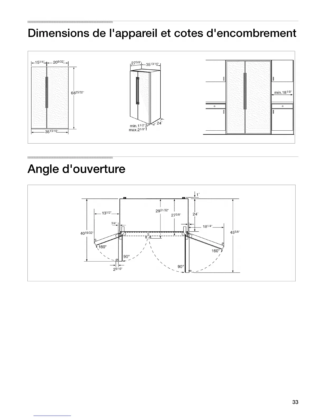Bosch B22CS Series - Angle Douverture; Dimensions de Iappareil Et Cotes Dencombrement