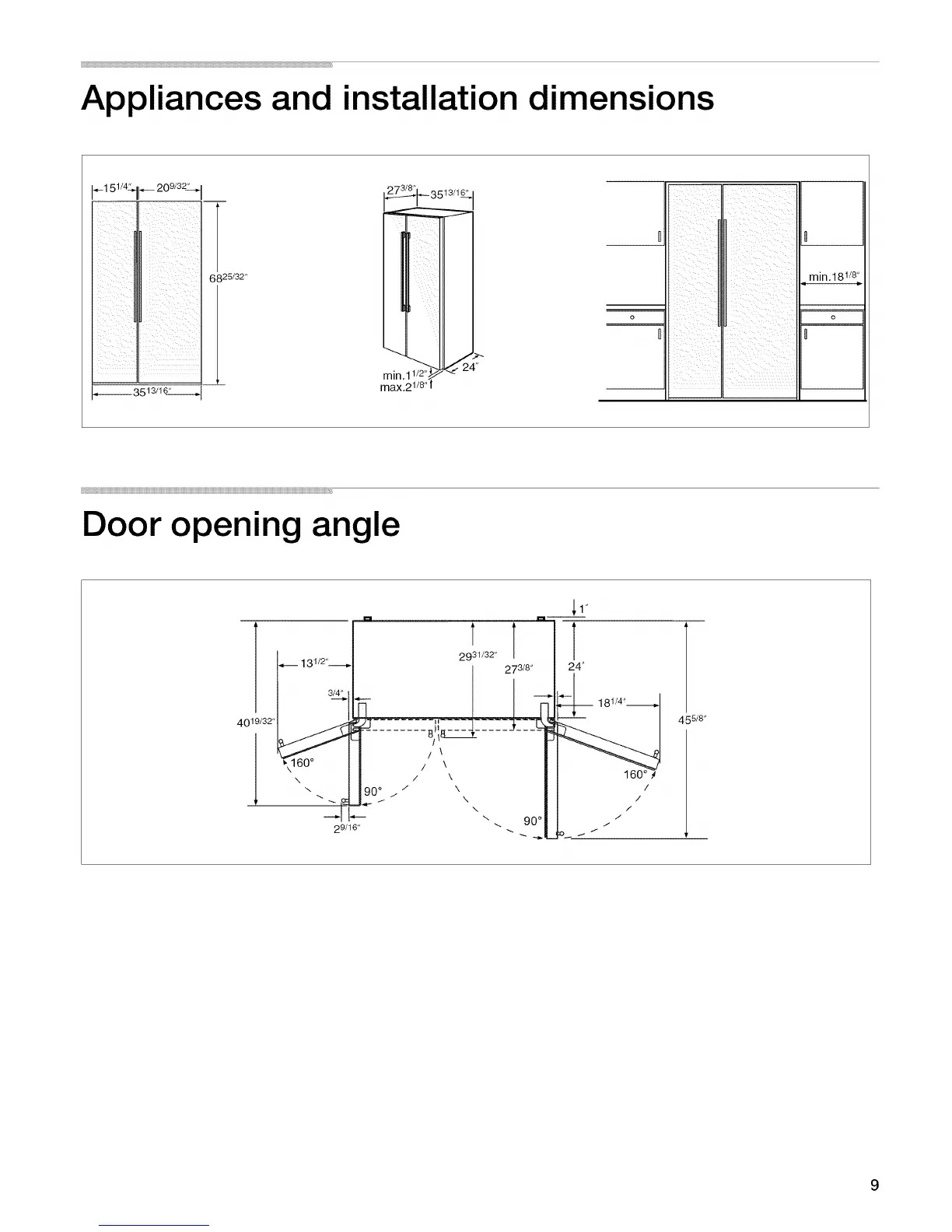 Bosch B22CS Series - Appliances and Installation Dimensions; Door Opening Angle