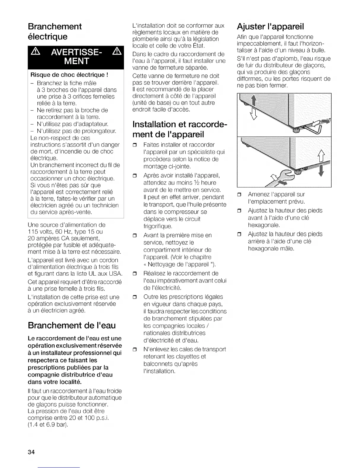 I'eau a I'appareil, il faut installer une