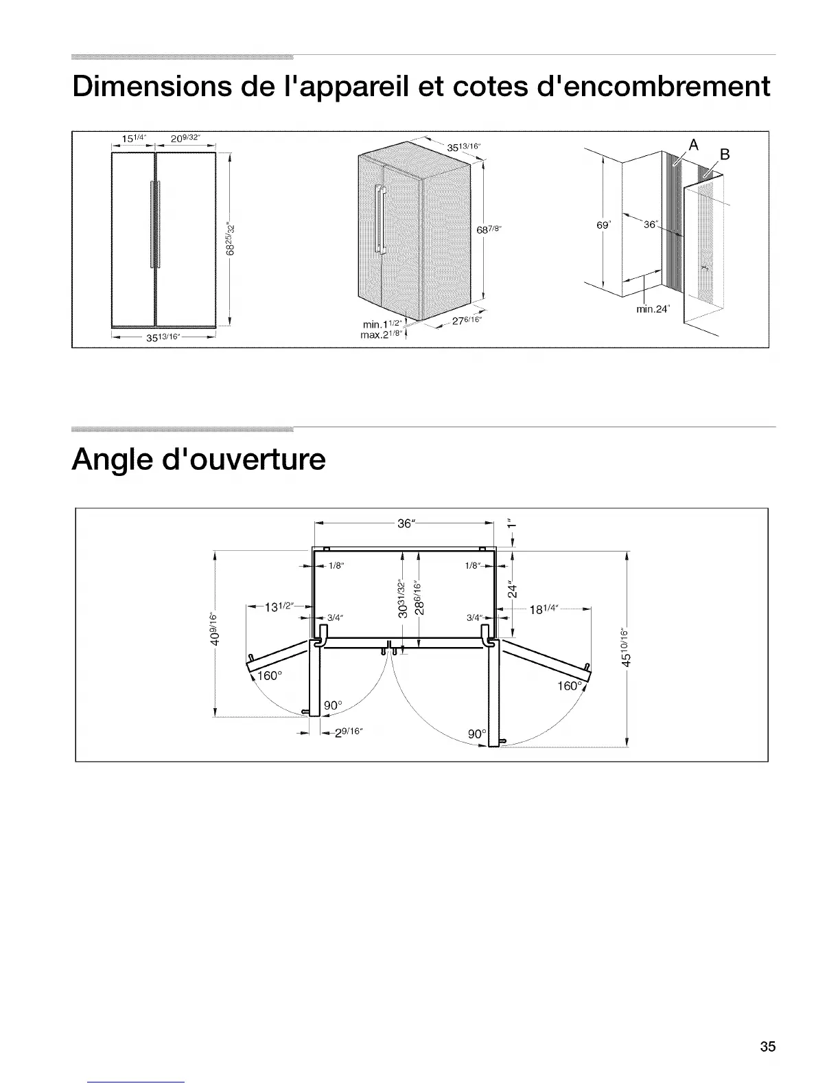 Bosch B22CS80SNS-01 - Angle Douverture; Dimensions de Iappareil Et Cotes Dencombrement