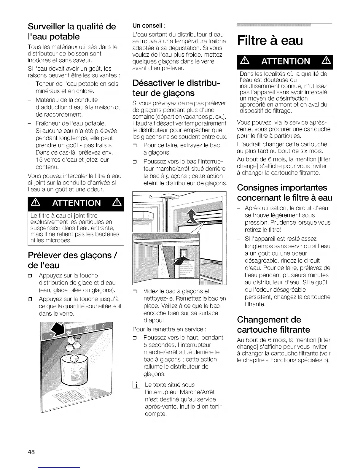 distribution de glace et d'eau