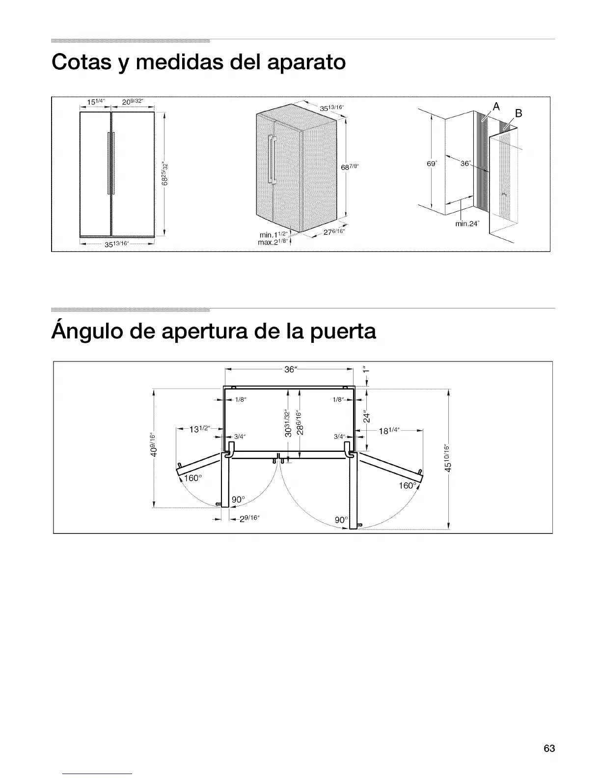 Bosch B22CS80SNS-01 - ,Ngulo de Apertura de la Puerta; Cotas y Medidas del Aparato