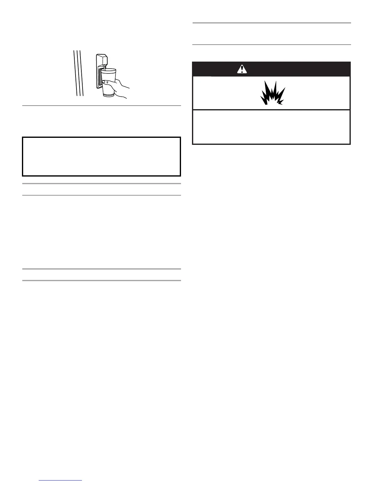 4. Flush the water system. See “Water Dispenser” or “Water and