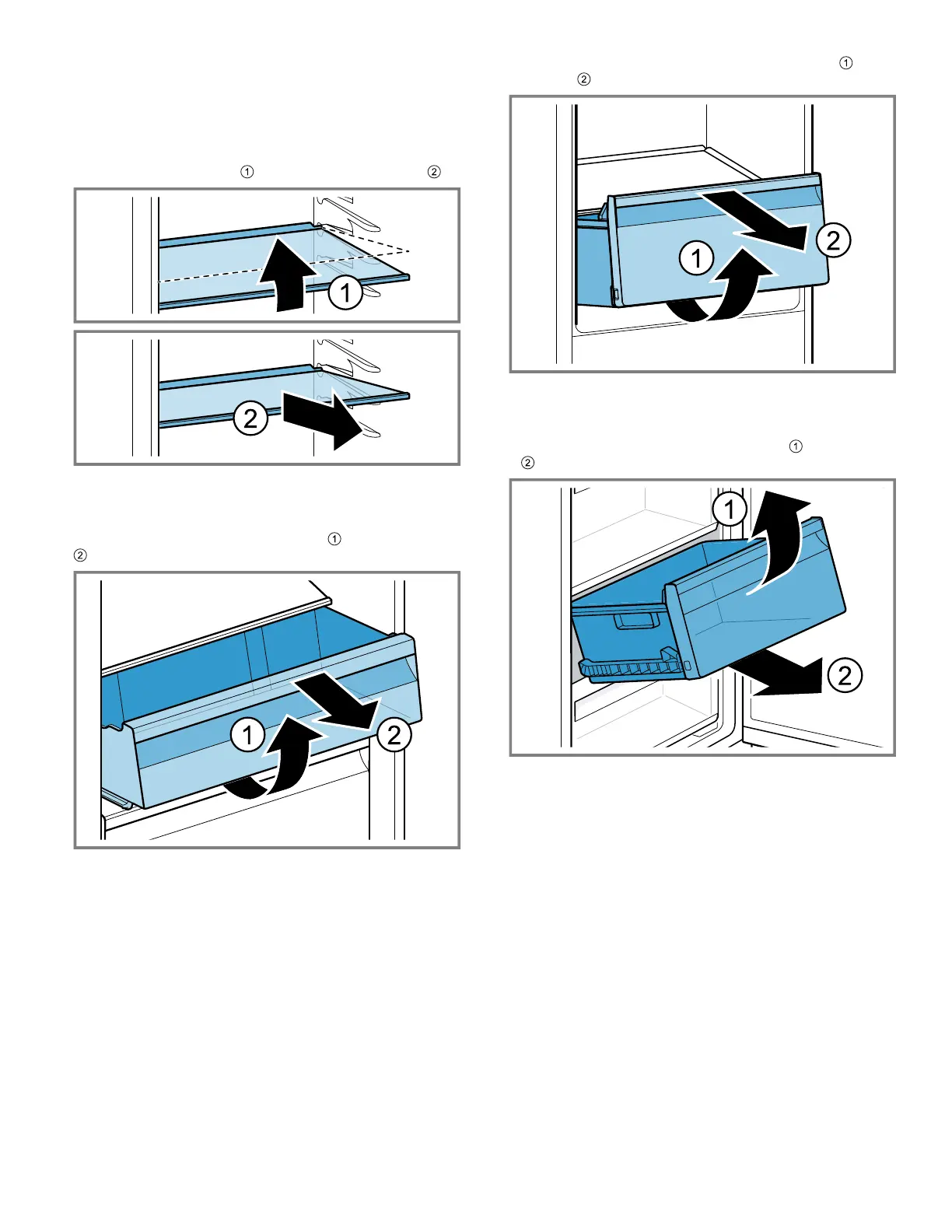 ▶ Lift the shelf at the front , pull it out and remove it .