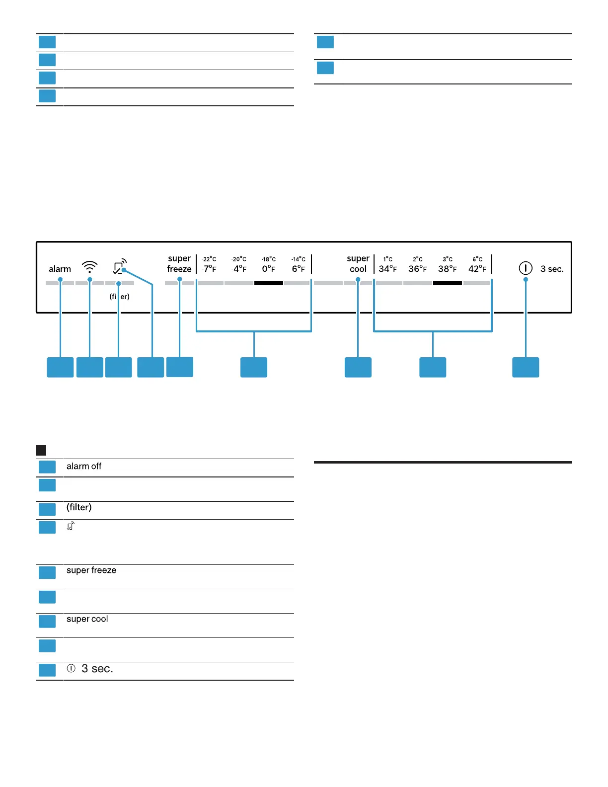 Affiche la température réglée du compartiment