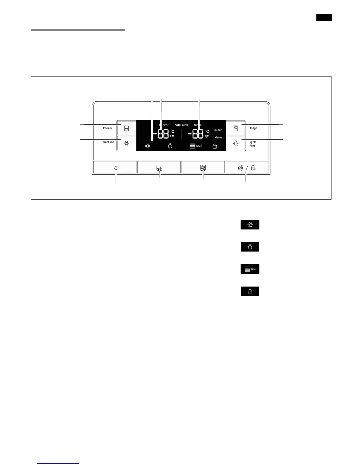 The control and display panel on the left refrigerator door consists of a touch pad.
