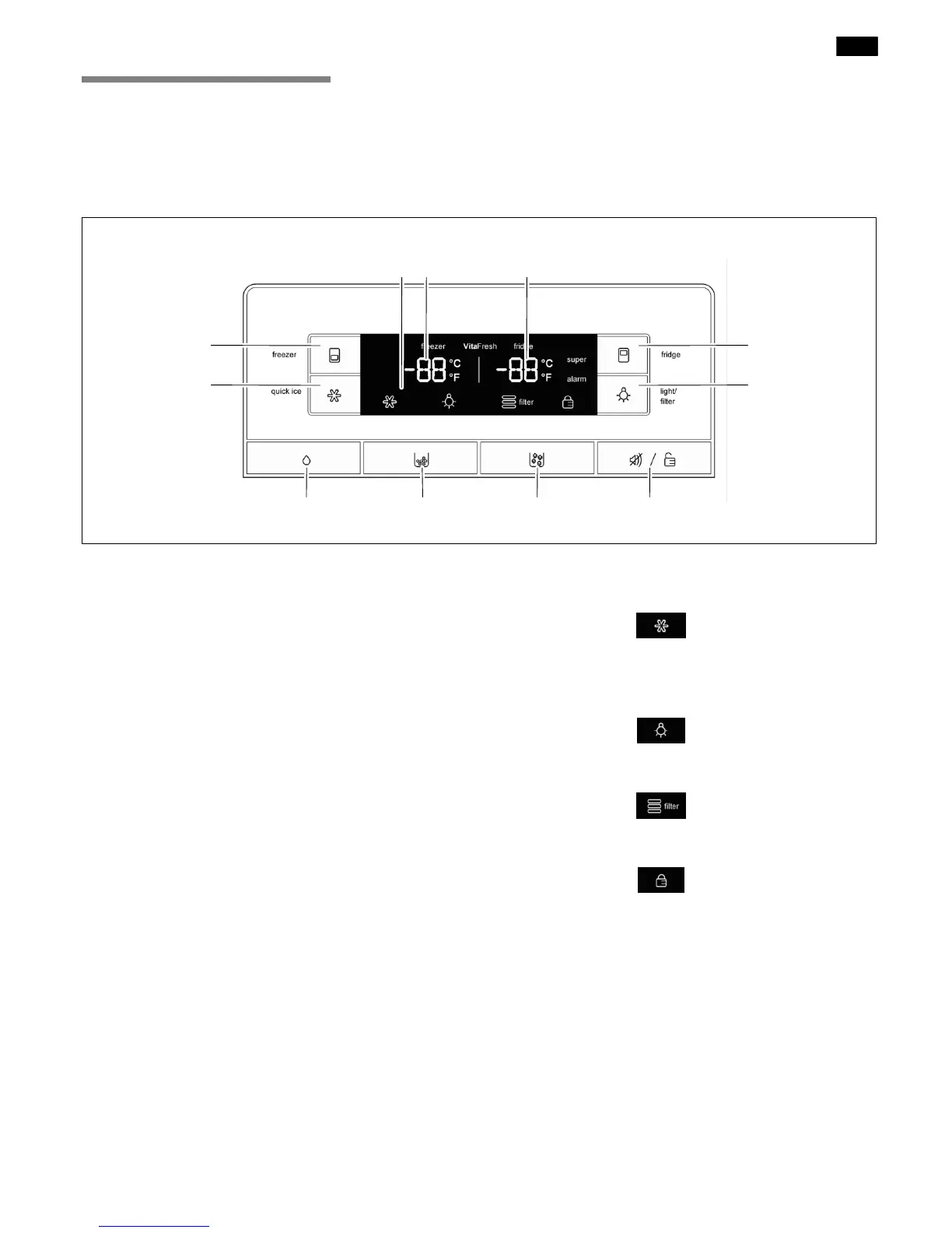 Le panneau de commande et d’affichage à la porte gauche du réfrigérateur comprend un champ tactile.