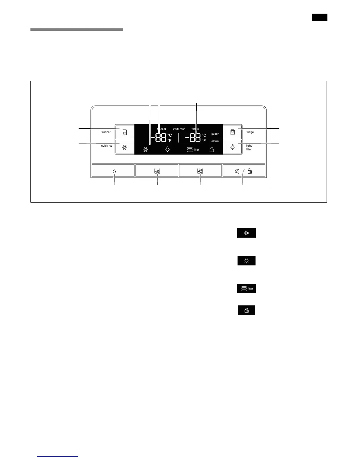El panel de control y de la pantalla que se encuentra en la puerta izquierda del refrigerador consiste en un teclado con