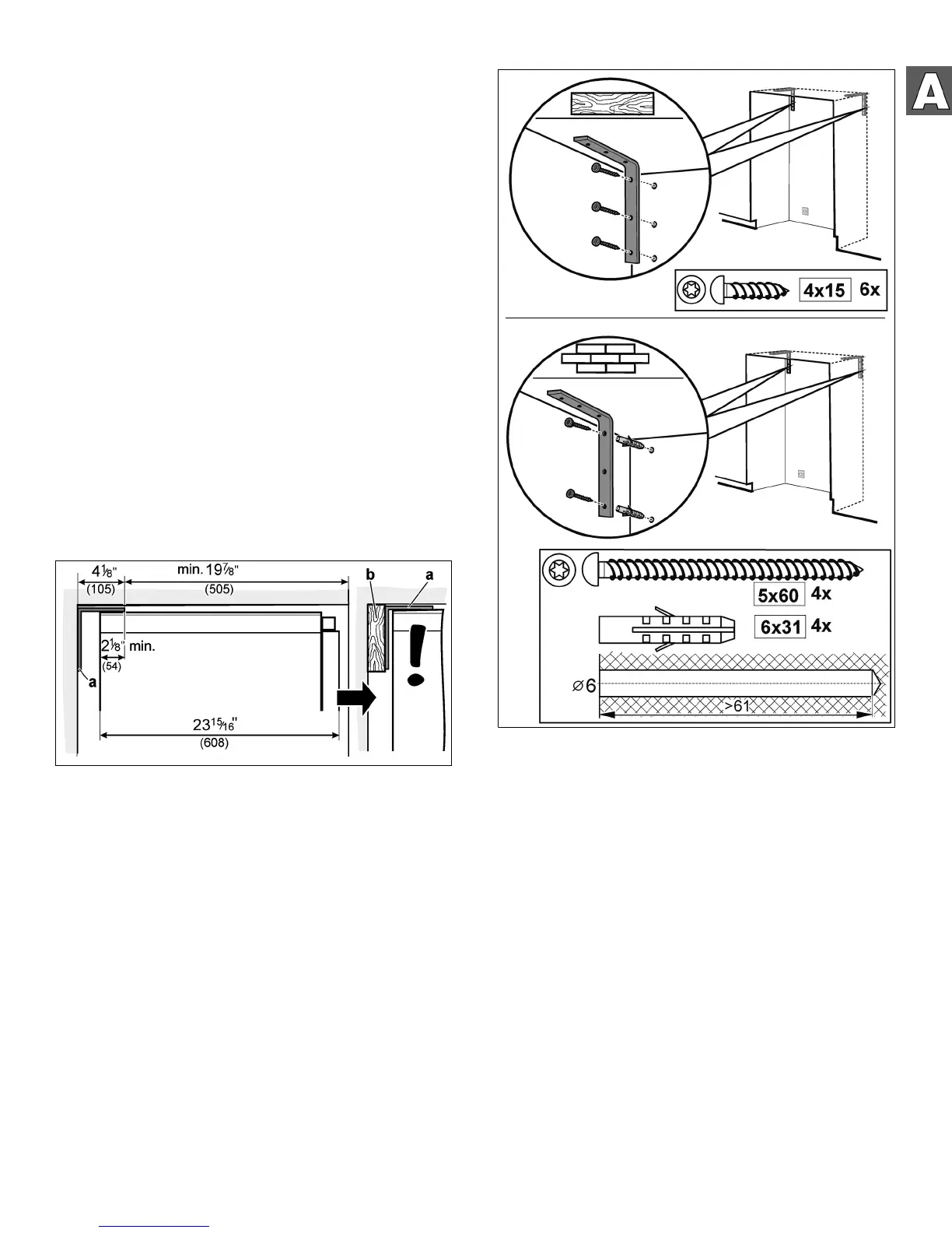 The anti-tip-brackets (a) must overlap a minimum of