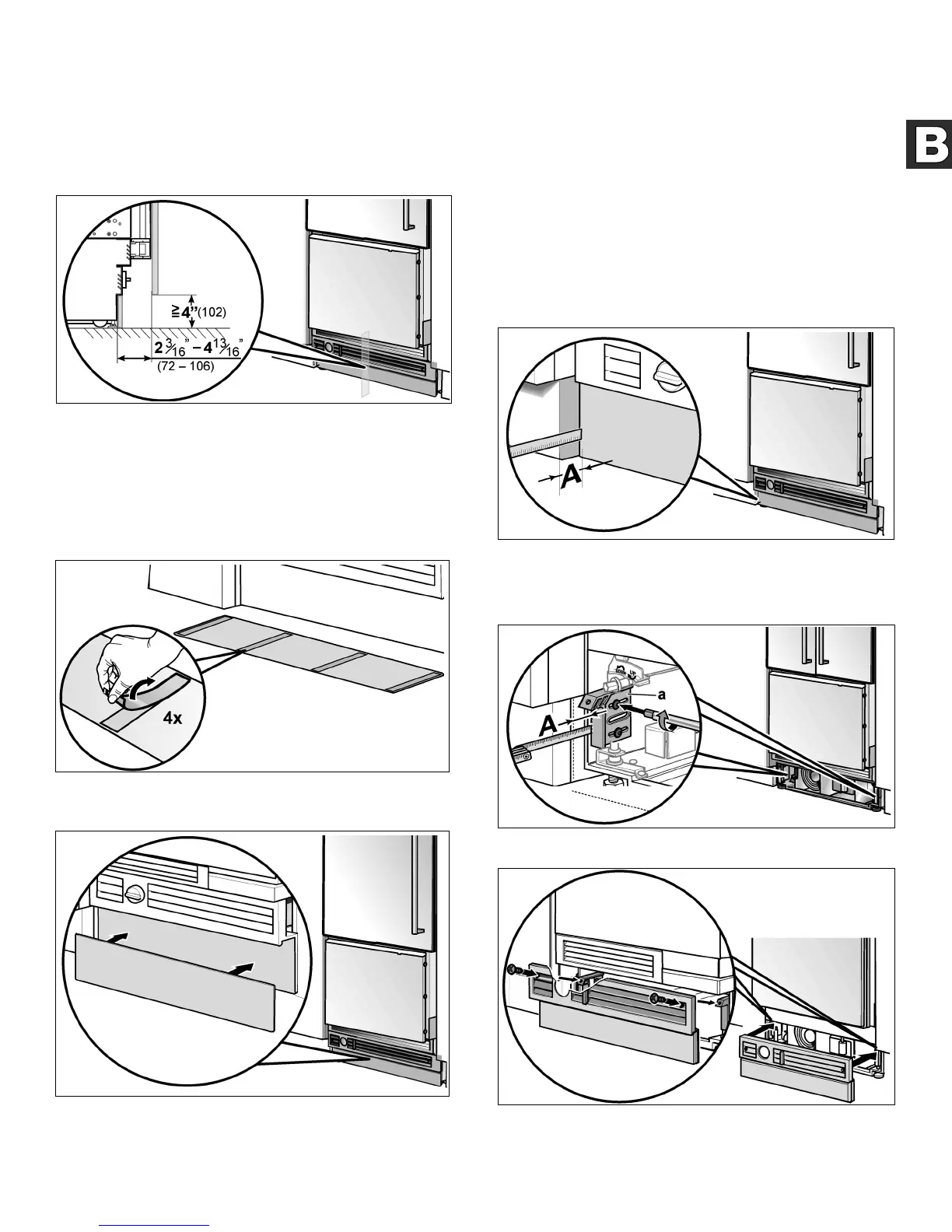 3. Ajustez les brides (a) aux dimensions A puis vissez