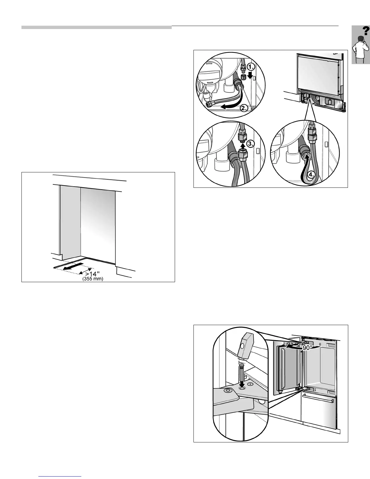 Pour conférer à la porte un angle d'ouverture de 90° :