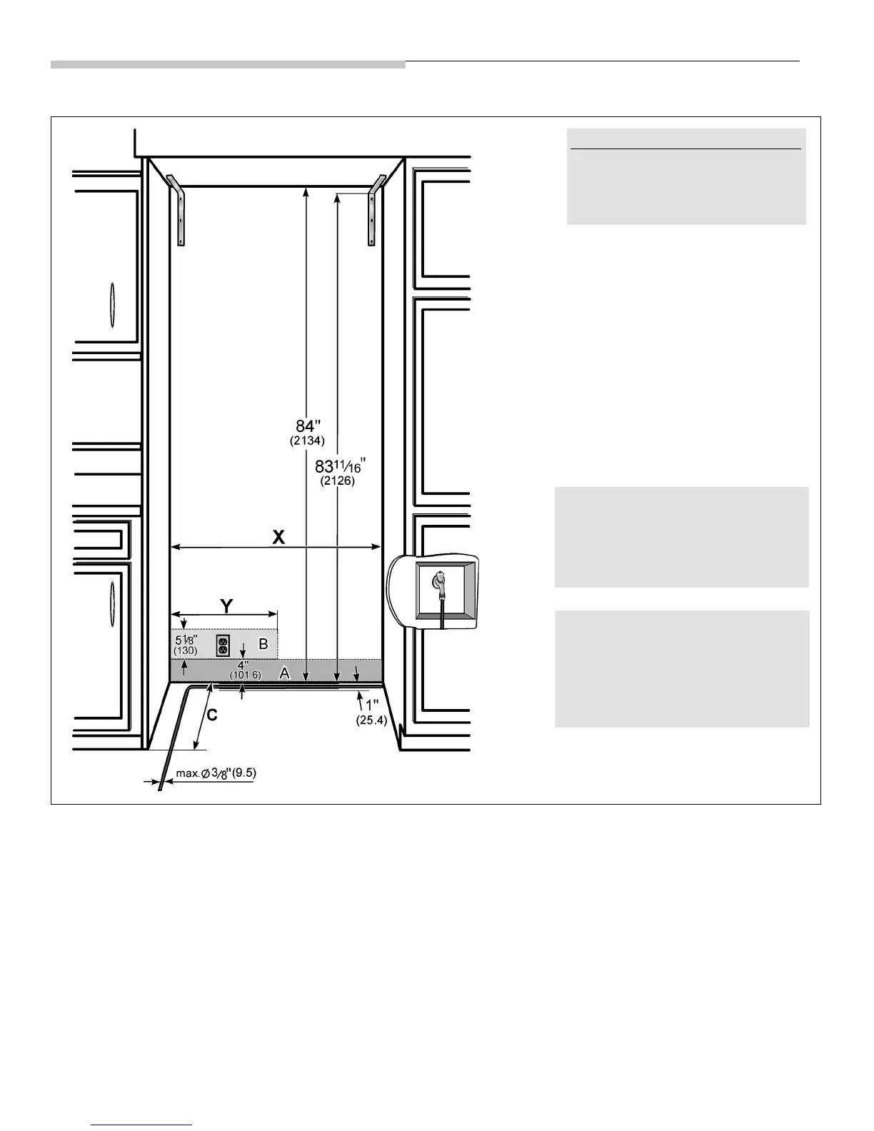 C = 24" (610 mm) como mínimo