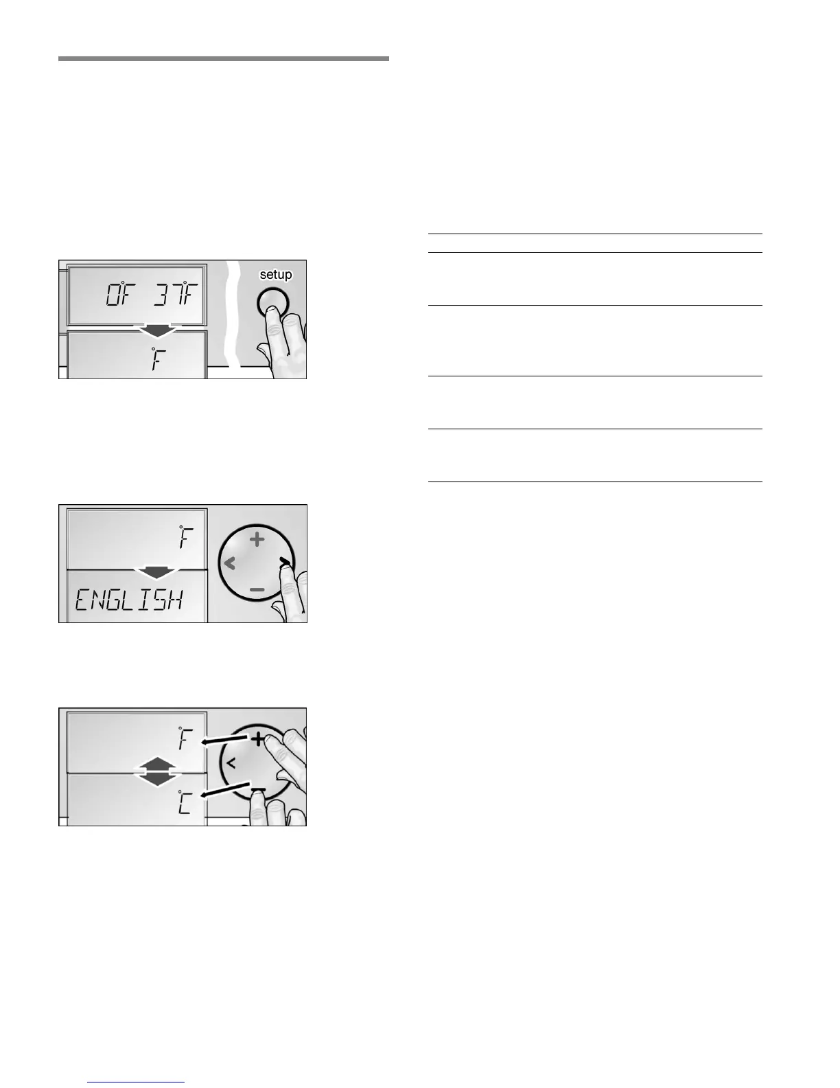 The first menu (temperature unit) is displayed