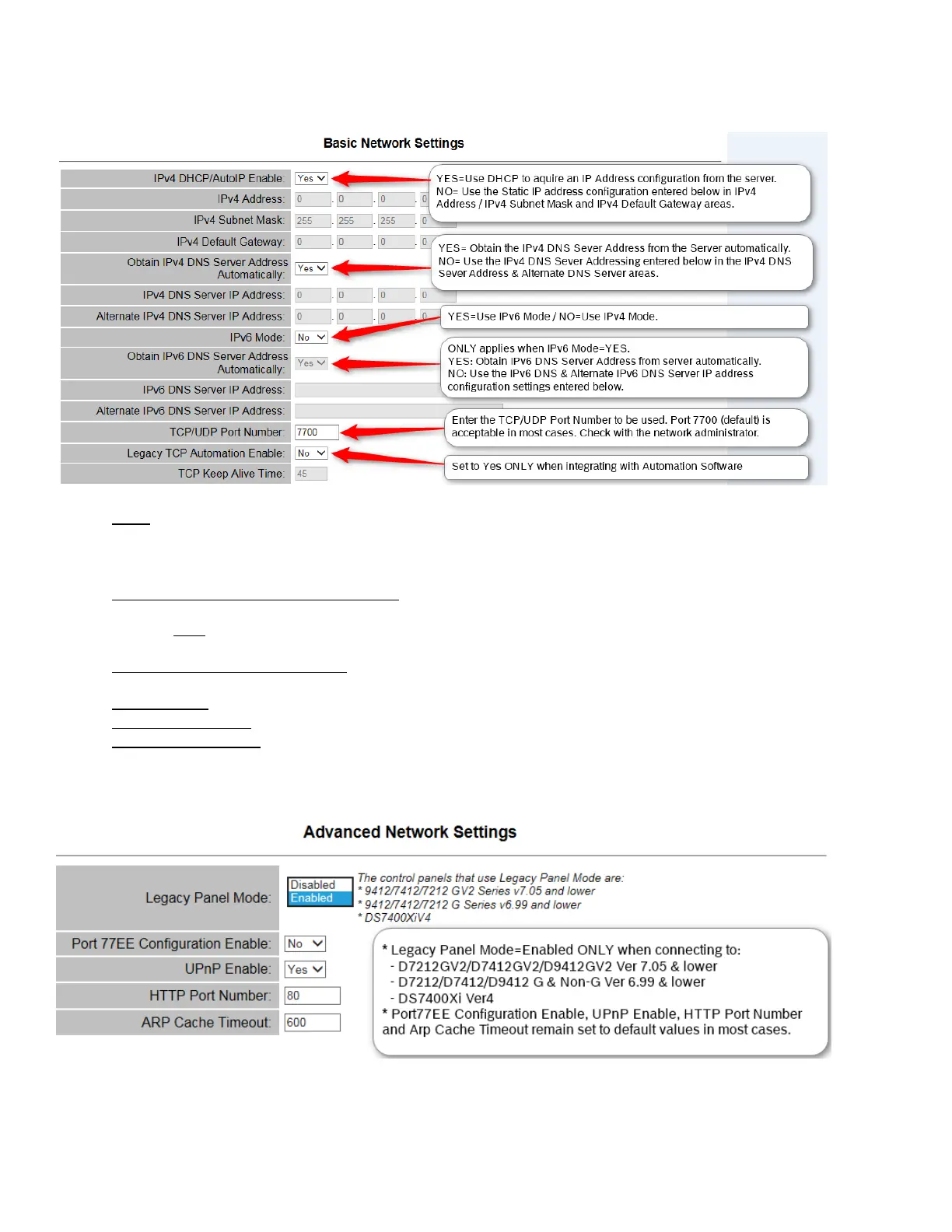 Note: Legacy TCP Automation Enable is used for Automation. Leave this setting=No when configuring