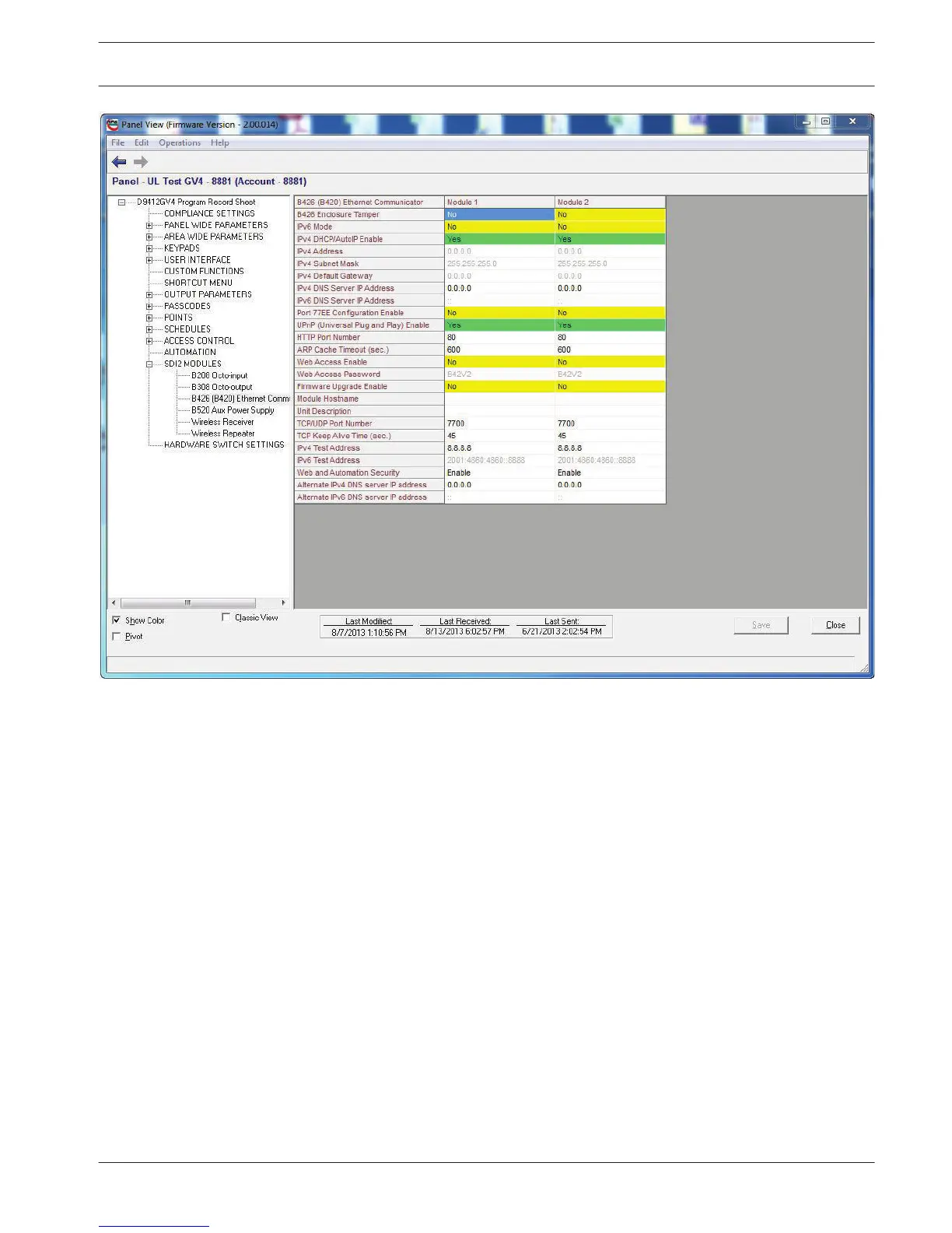 Figure 5.2: B450 settings shown as B42x in RPS with a GV4 control panel at v2.00