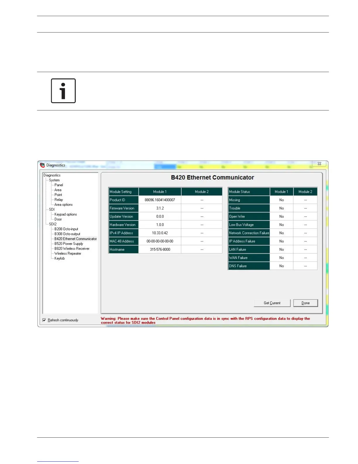 phone number of the plug-in module can be found on the RPS Diagnostics screen for the B42X