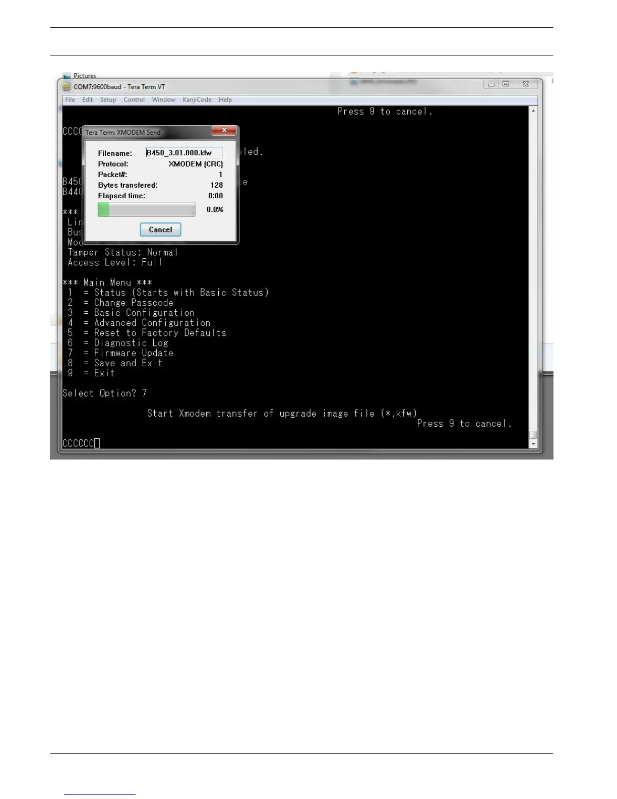 automatically. Within the Tera Term window an updating to firmware version “x.xx.xxx”