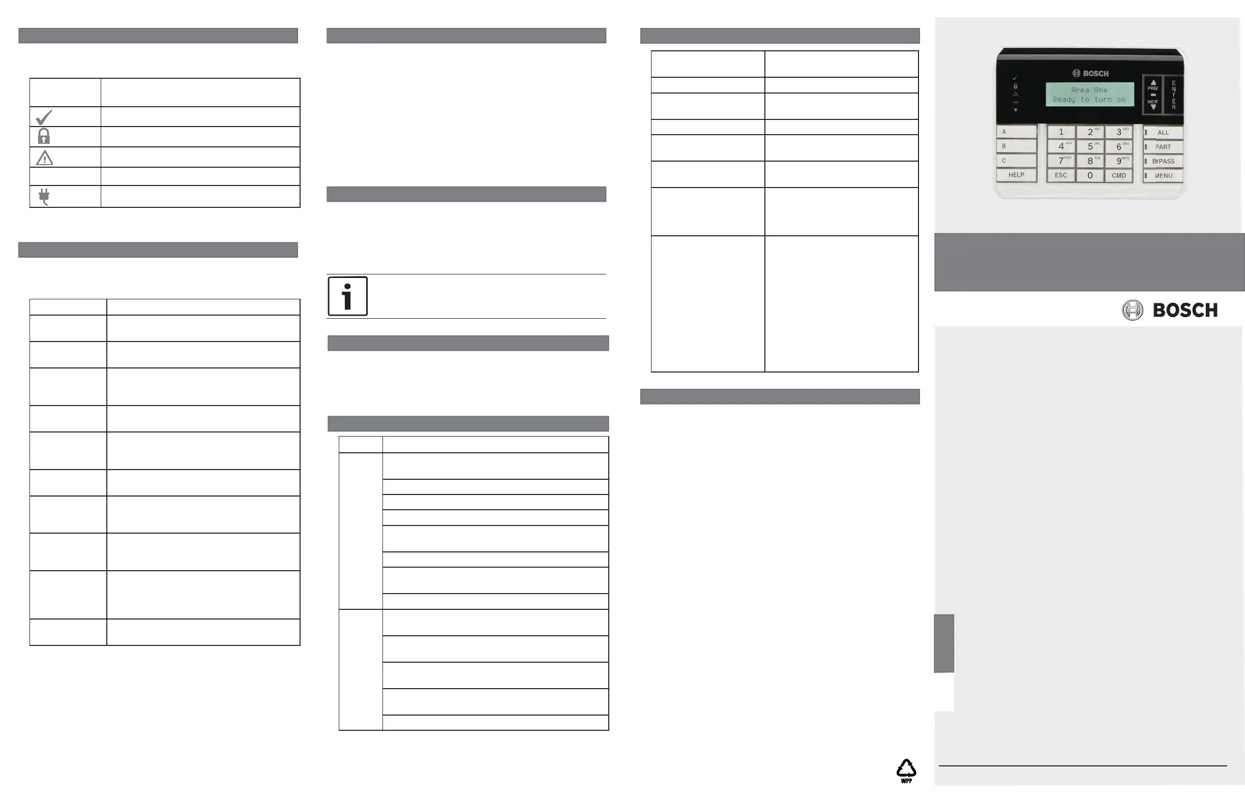 Burglary alarm When an area is in alarm, the keypad