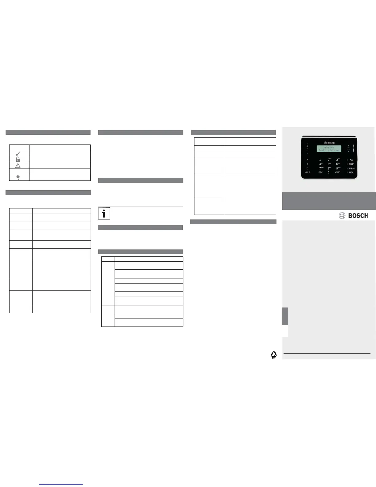 Burglary signal When an area is in alarm, the keypad