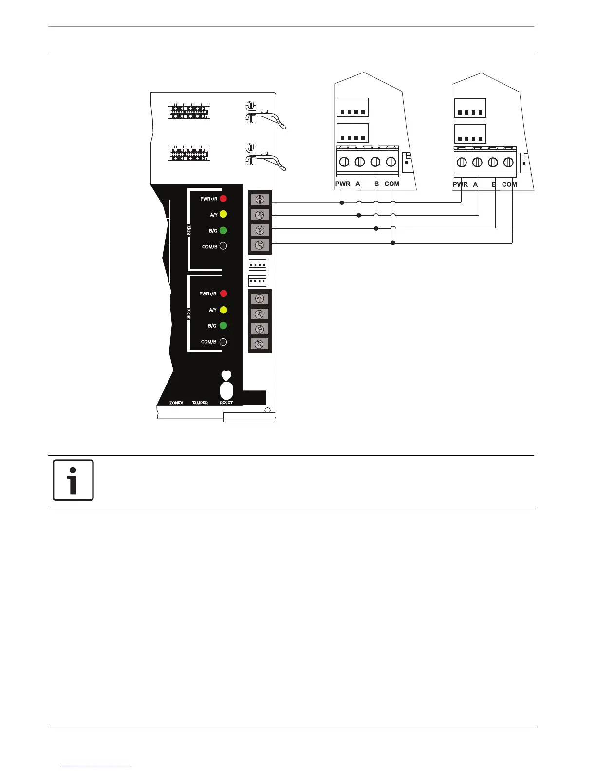 For more information on interconnect wiring, refer to SDI2 interconnect wiring, page 17.