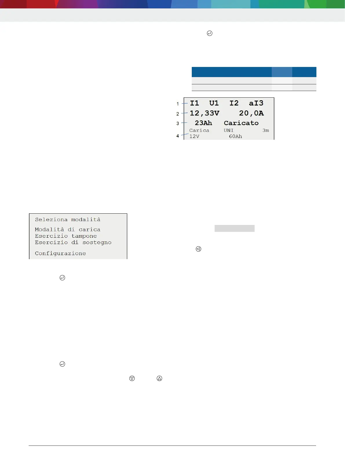 4 Indicazioni su modalità operativa, tipo di batteria, lunghezza cavo