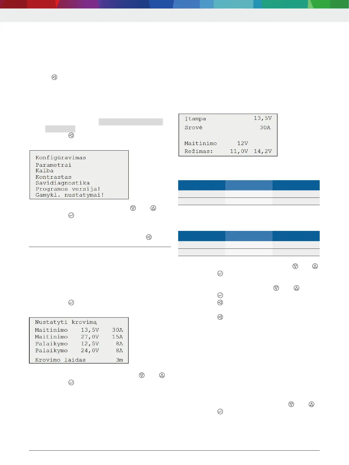 1. Pasirinkite parametrus (įtampa) naudodami arba .