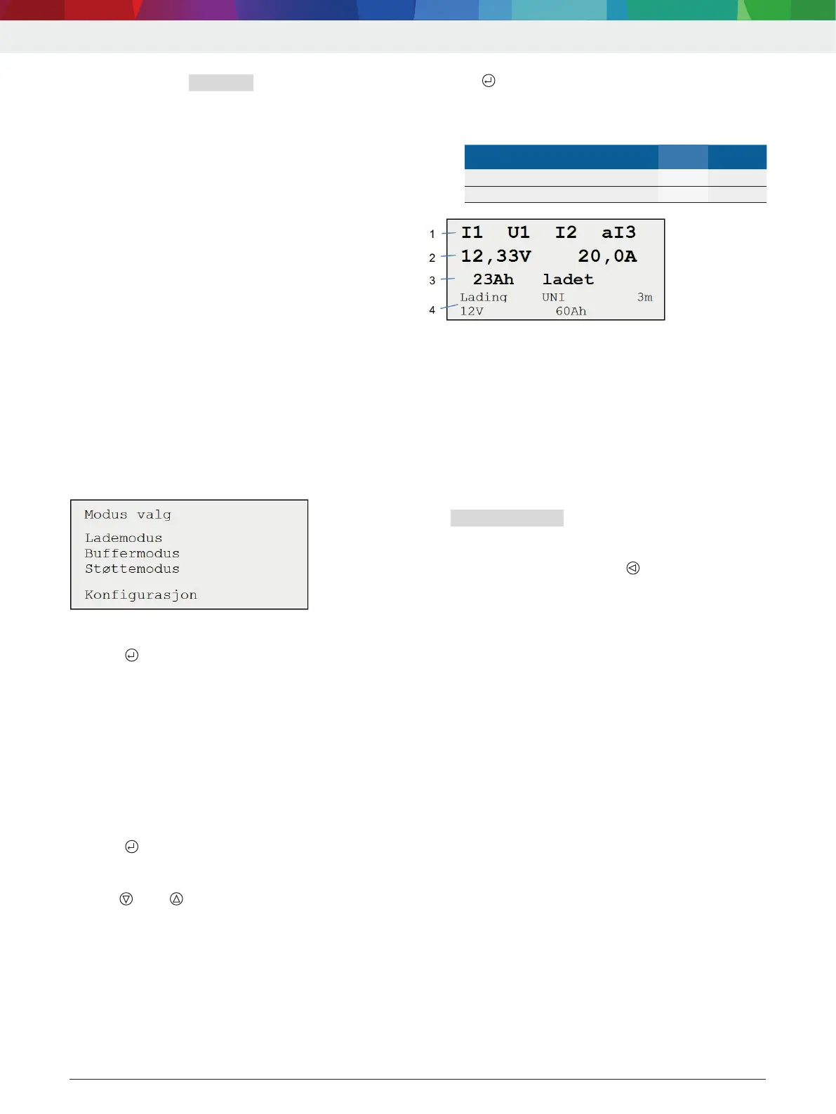 4 Informasjon om driftsmodus, batteritype, lengde på ladekabel,