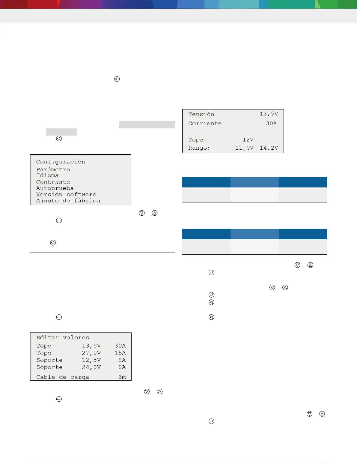 1. Seleccionar el parámetro (tensión) con o .