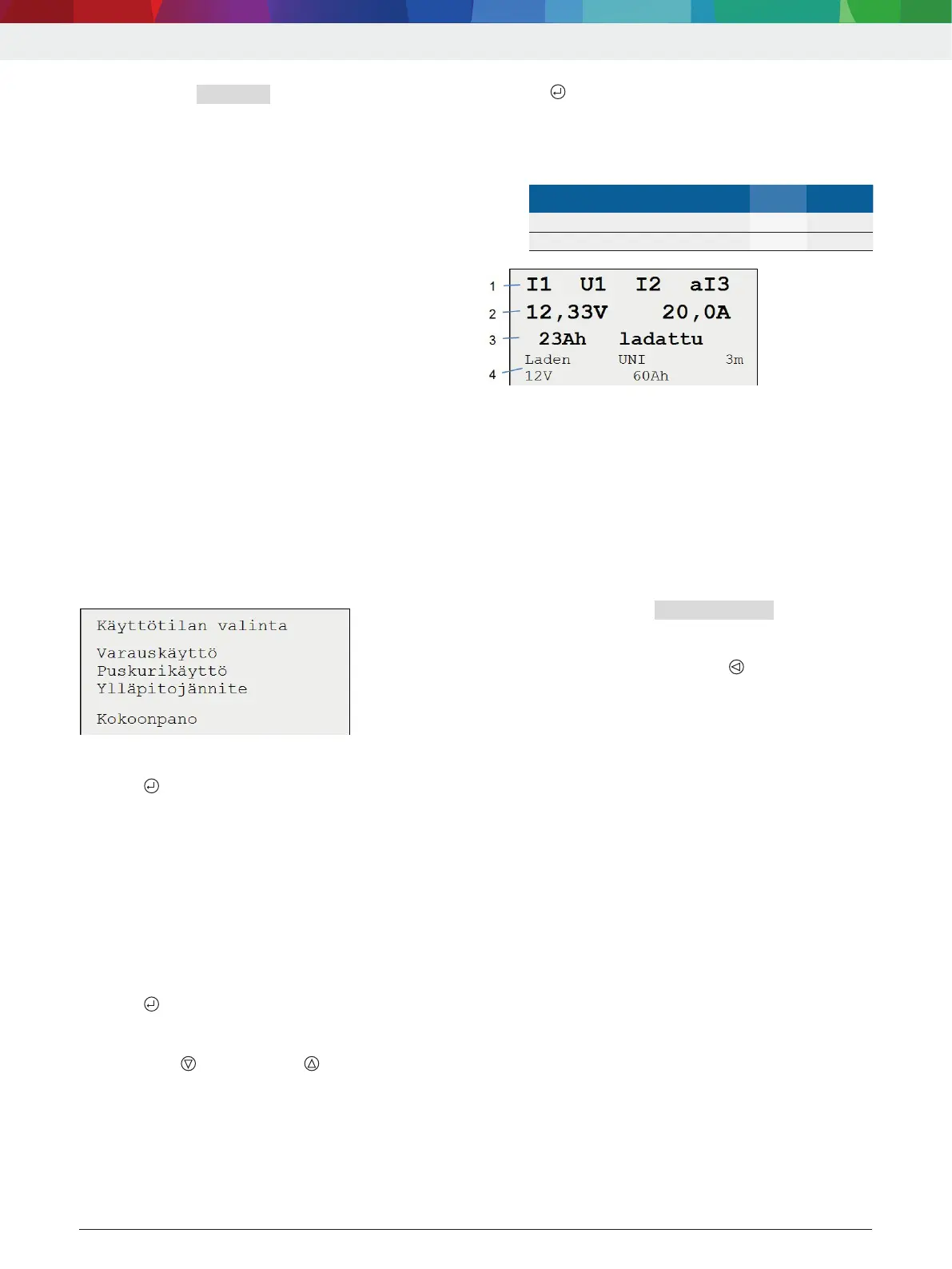 i Valikko "Käyttötapa" näytetään vain, kun akku on