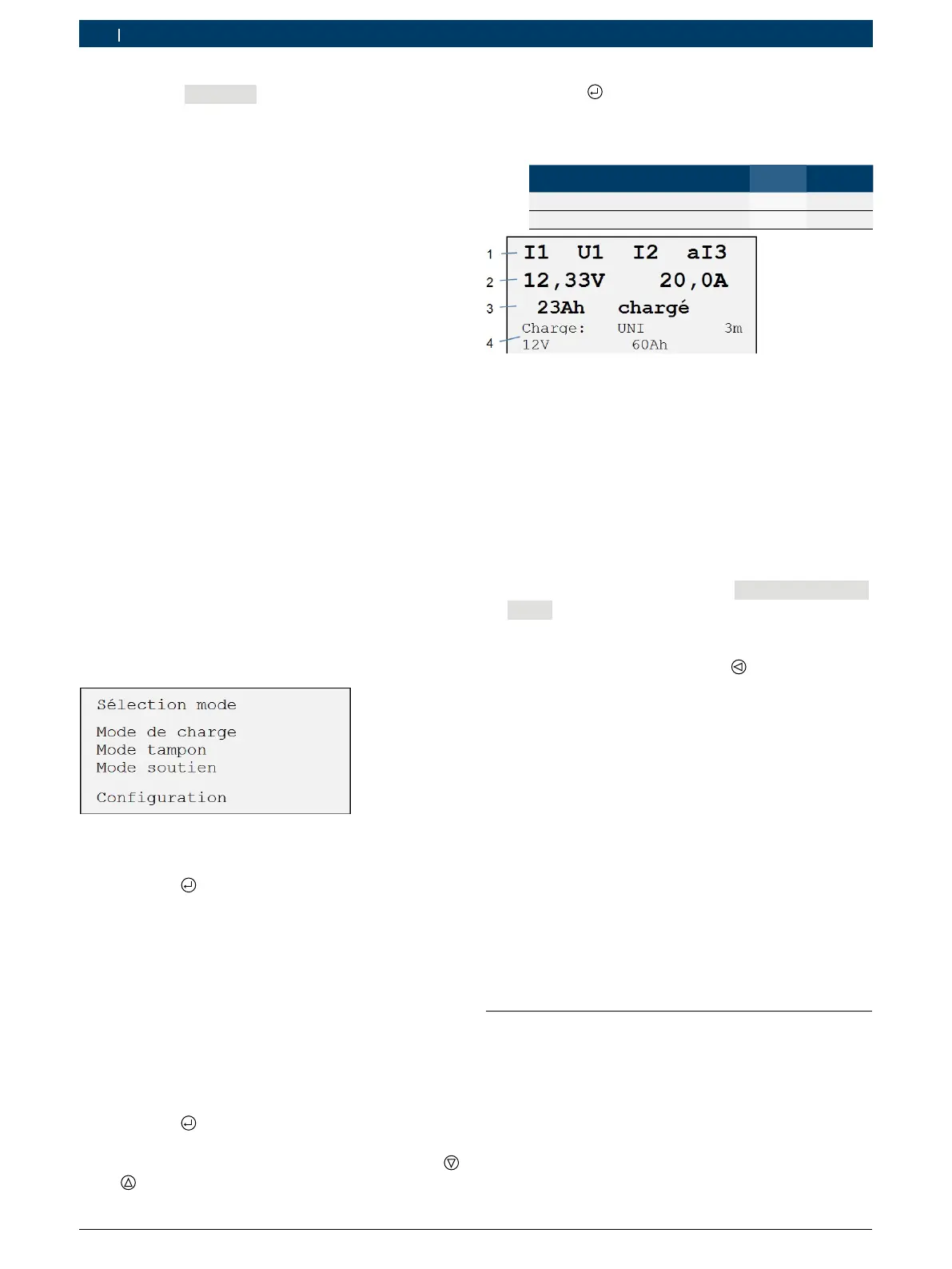 4 Indication du mode de fonctionnement, du type de batterie, des