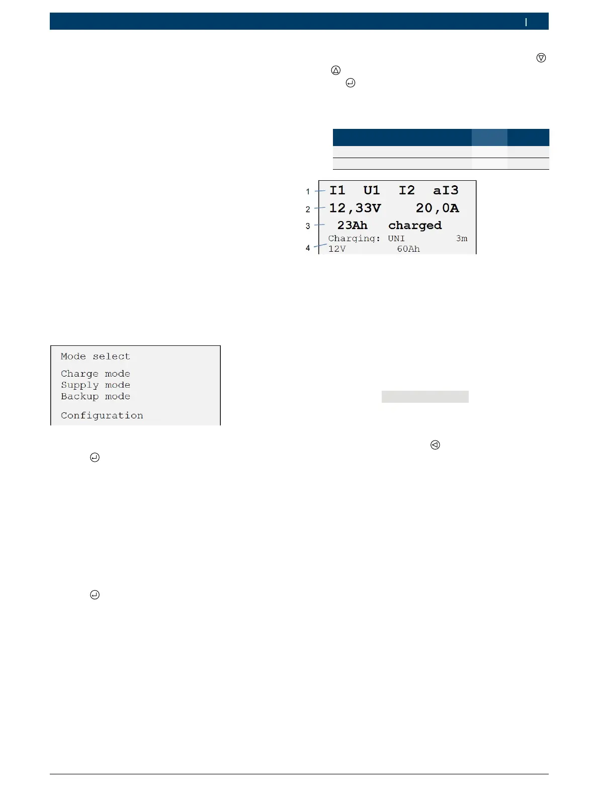 i The "Mode" menu is displayed (only with battery
