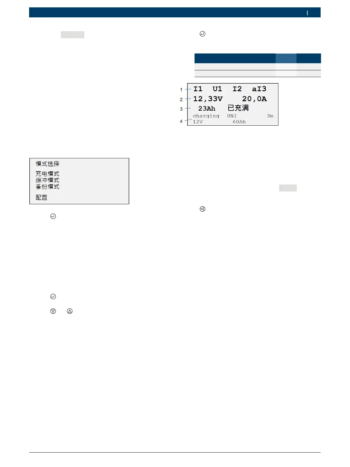 4 运行模式、电池类型、充电线长度、电池电压和电池容量说明