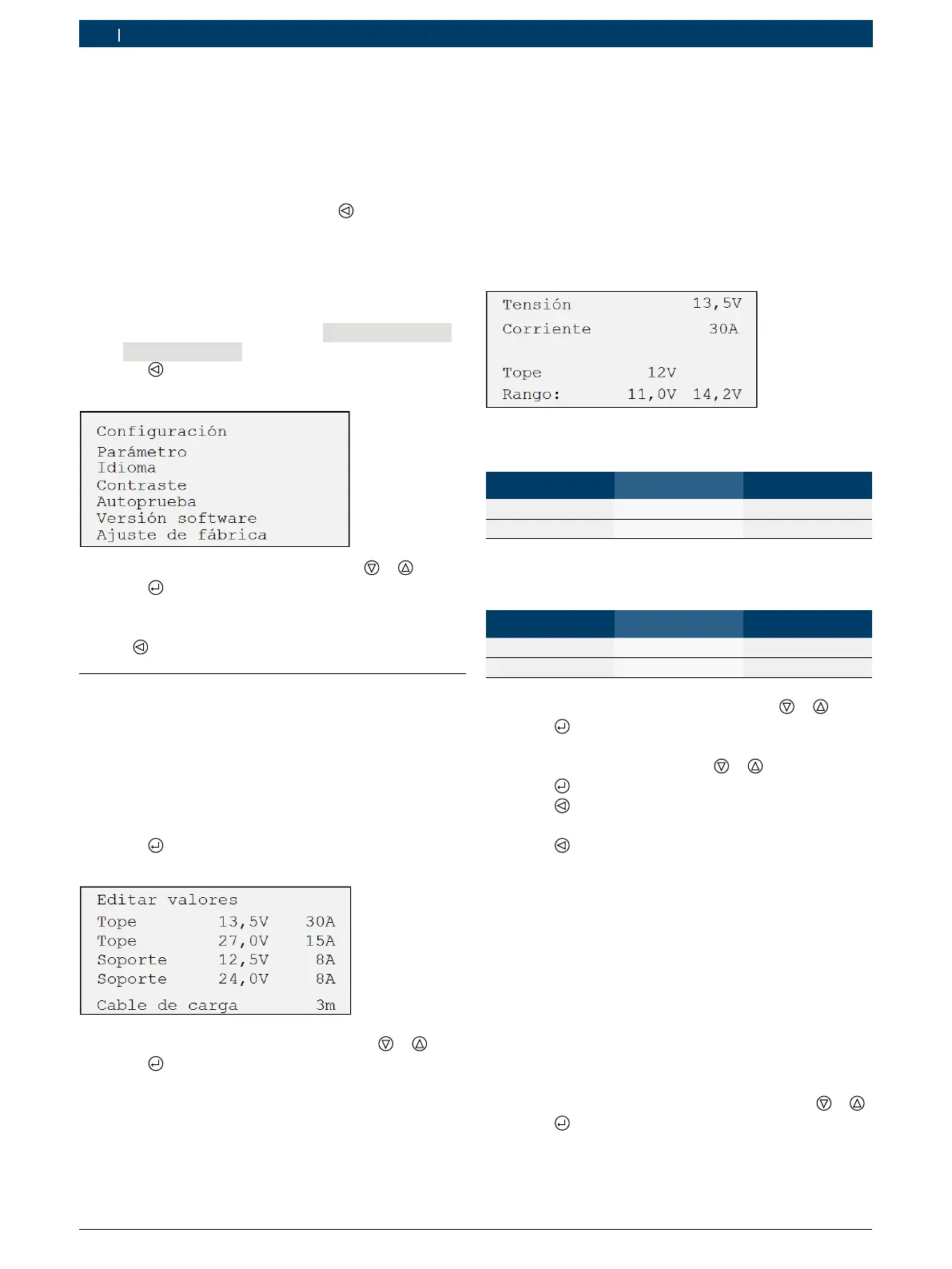 1. Seleccionar el parámetro (tensión) con o .