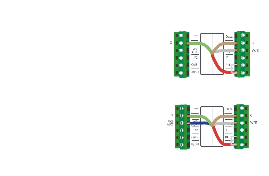 W/E, W2/AUX and G terminals on the wall plate, respectively