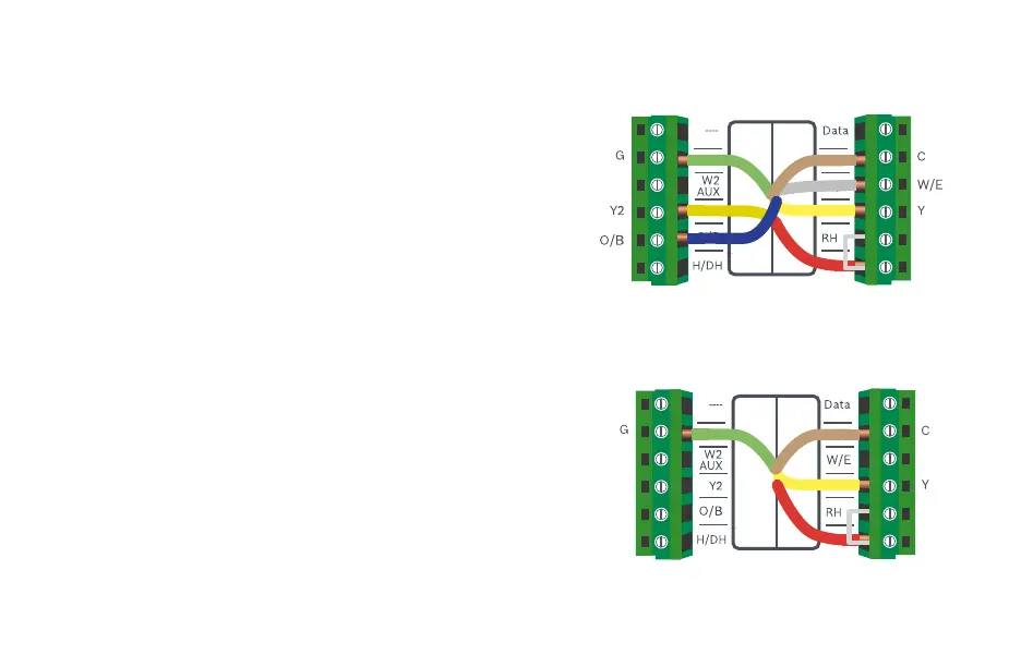 ▶ Connect the R, C, W1, Y1, Y2, O/B and G wires from the heat