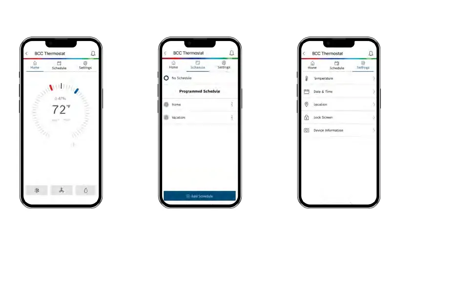 BCC Home tab screen to remotely adjust