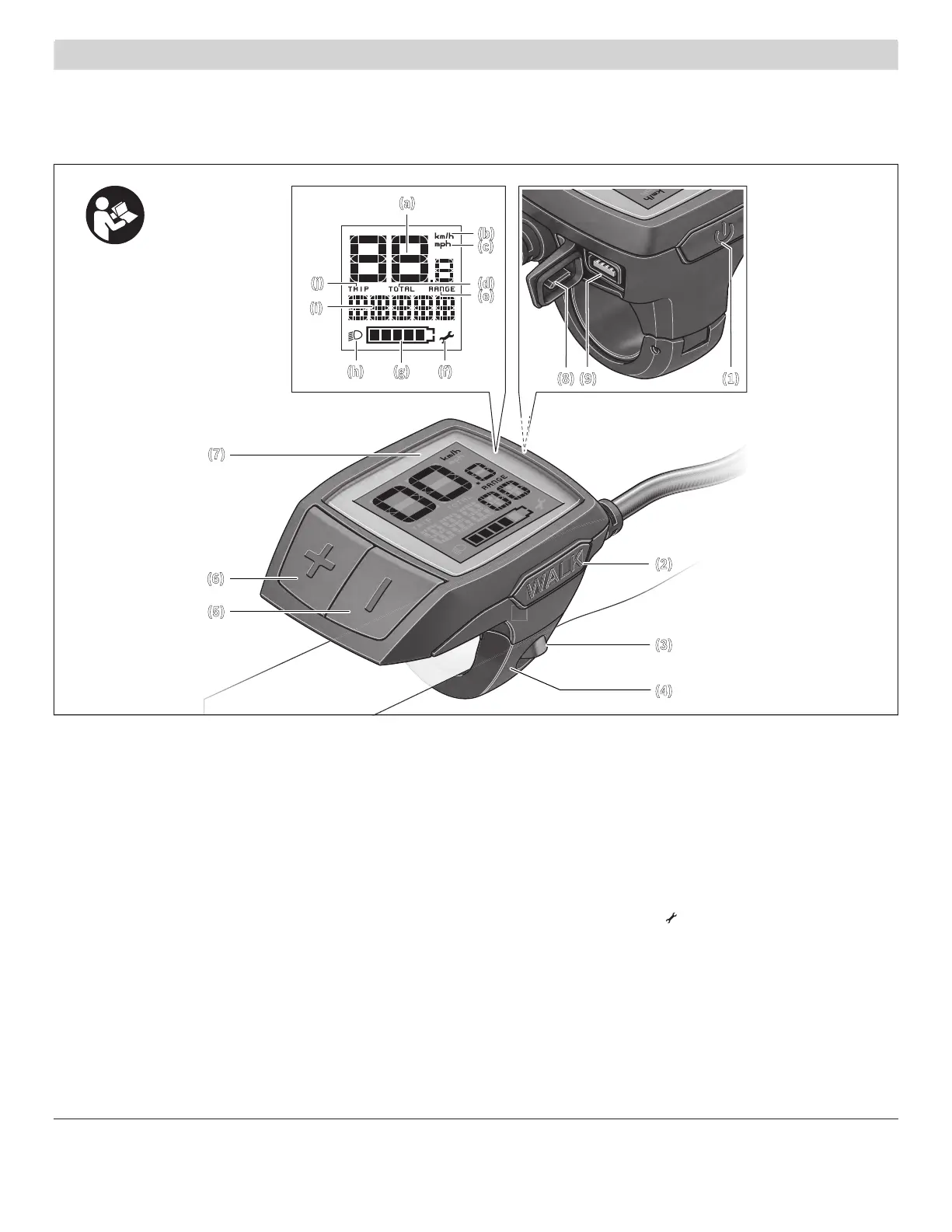 (5) Touche pour réduire le niveau d’assistance –