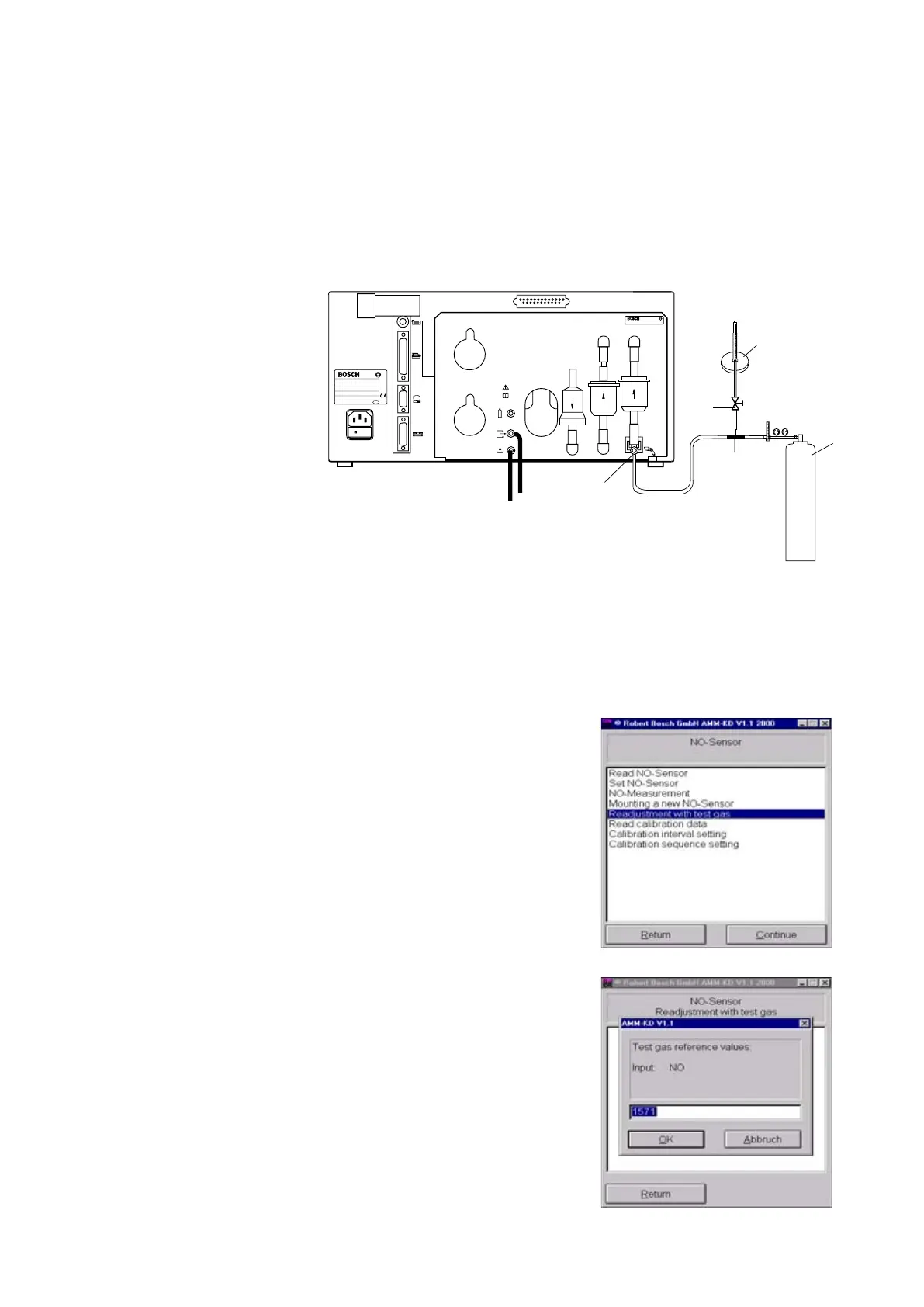 4.12.5 Readjustment with test gas i To calibrate the NO measuring sensor you will require a calibrating gas with the