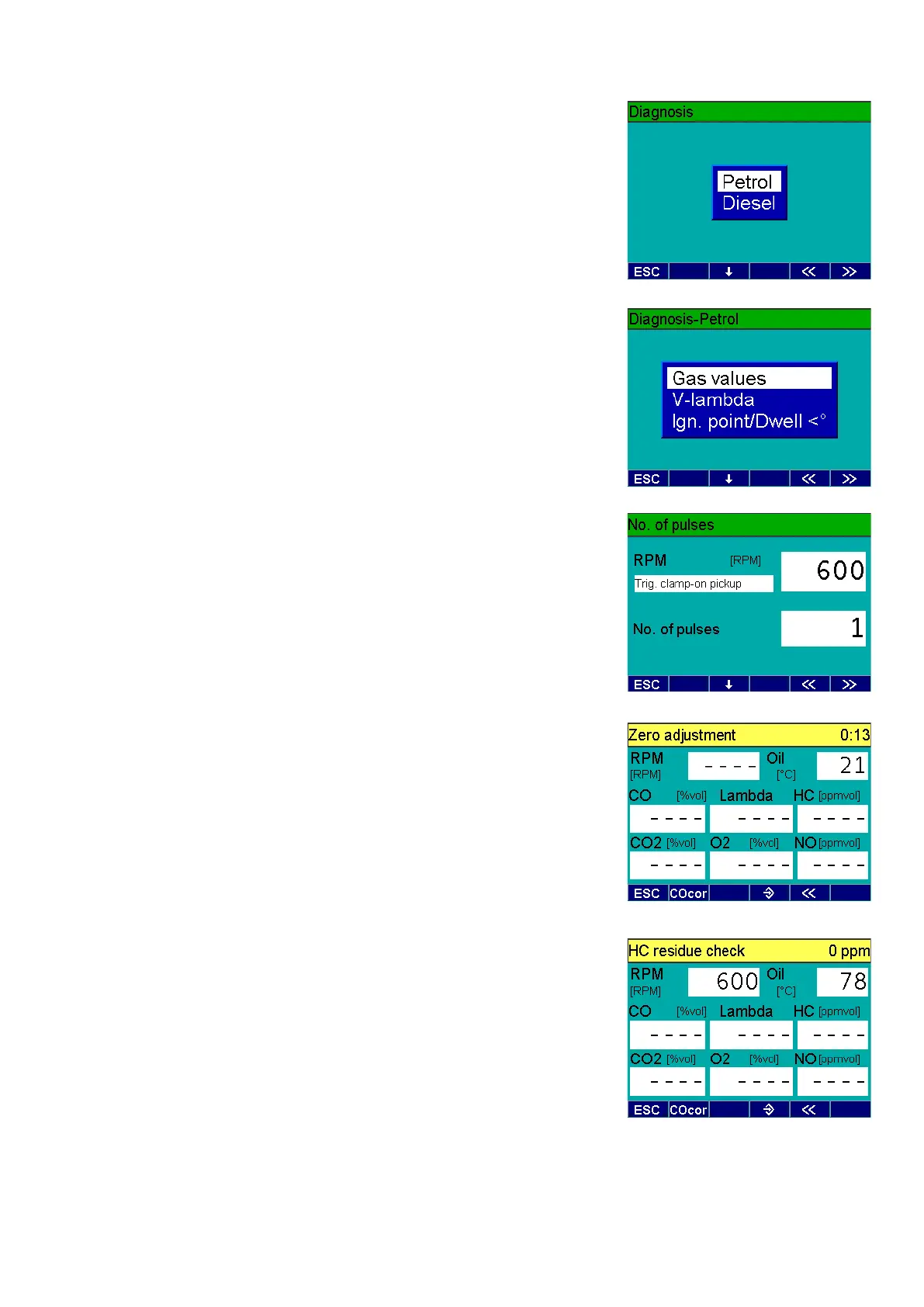 2. Press F2 or u to set the Diagnosis