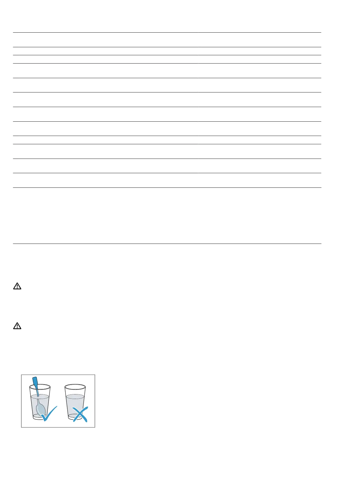 Metal (e.g. a spoon in a glass) must be kept at least