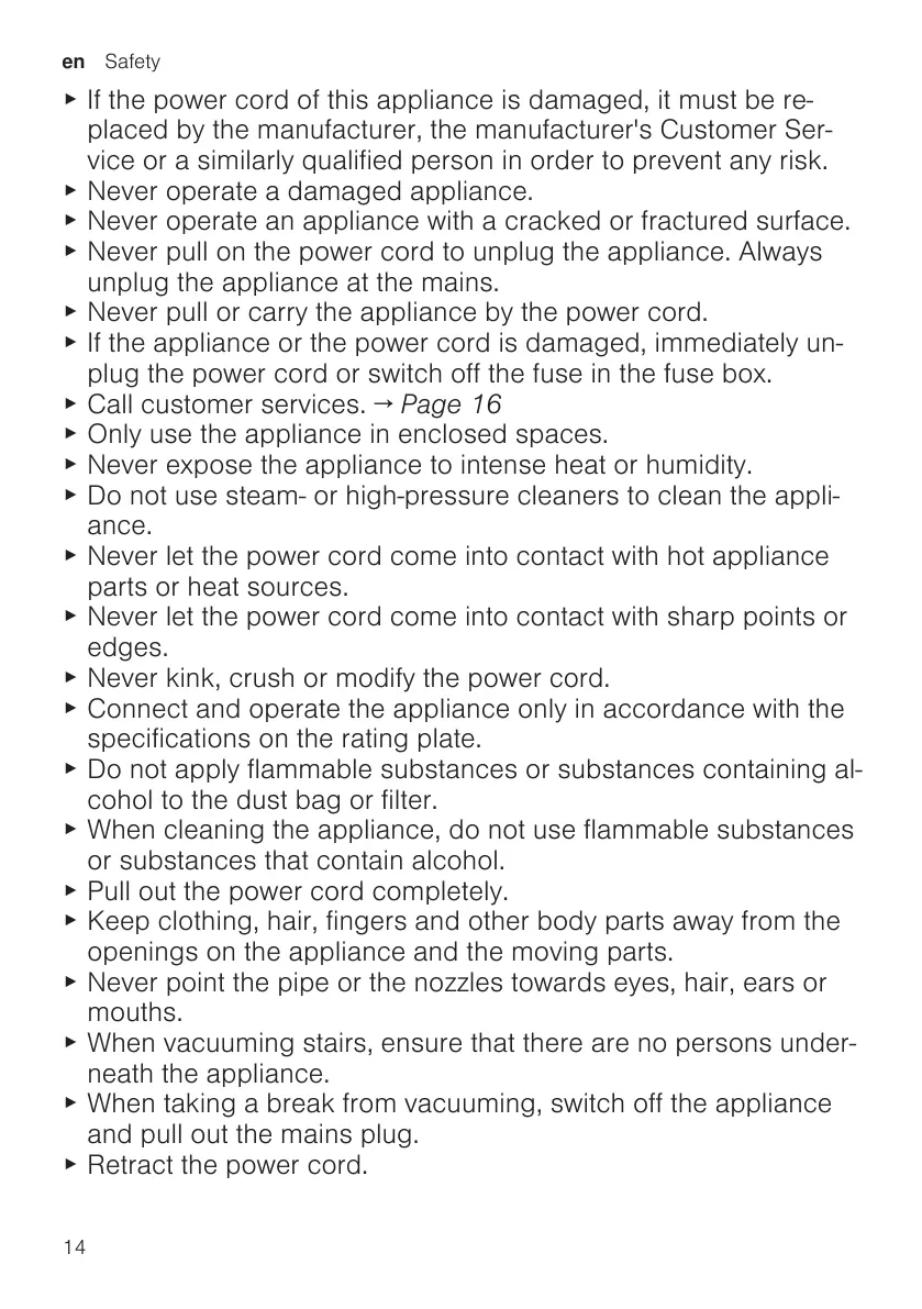 ▶ Never pull or carry the appliance by the power cord.