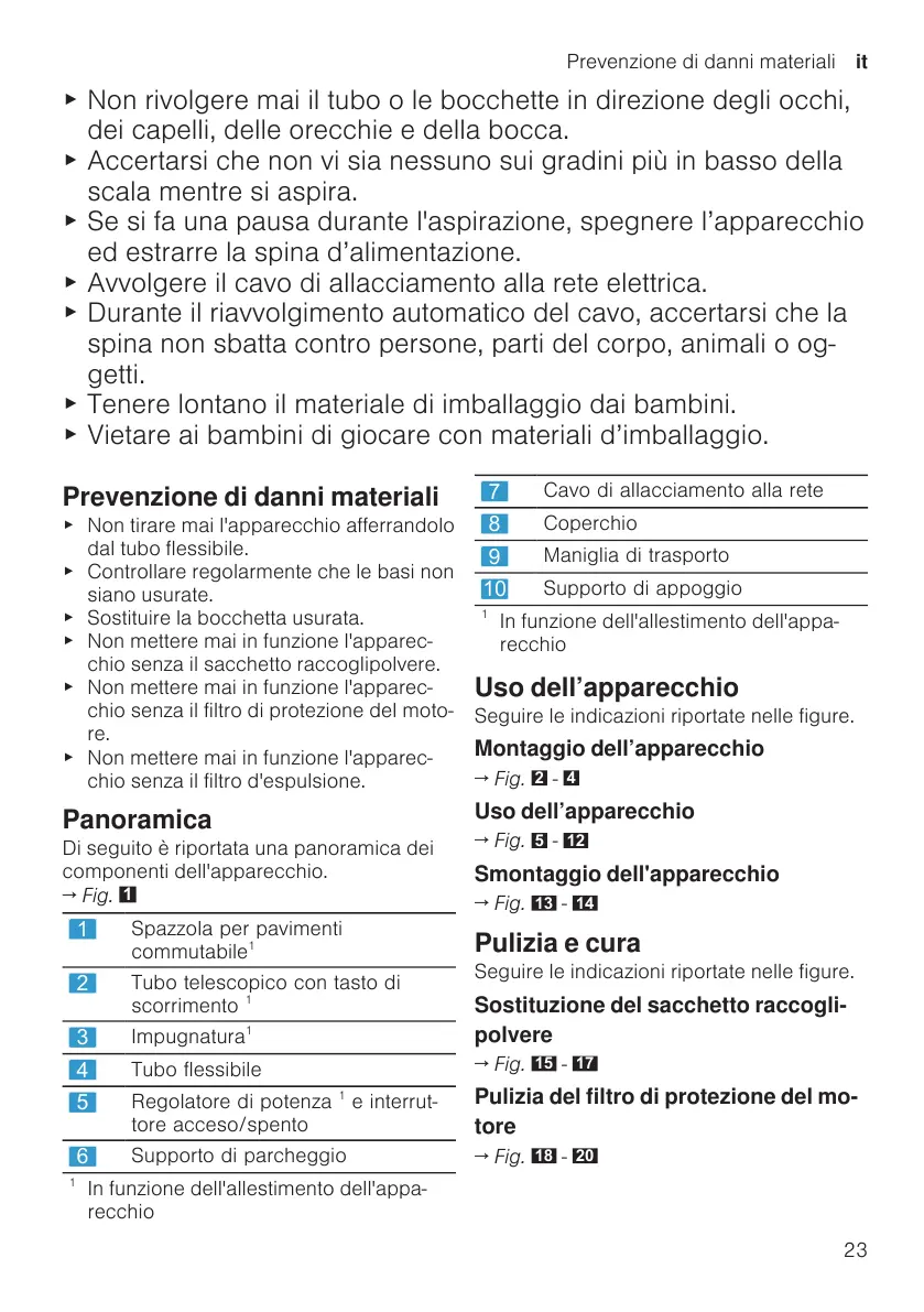▶ Se si fa una pausa durante l'aspirazione, spegnere l’apparecchio