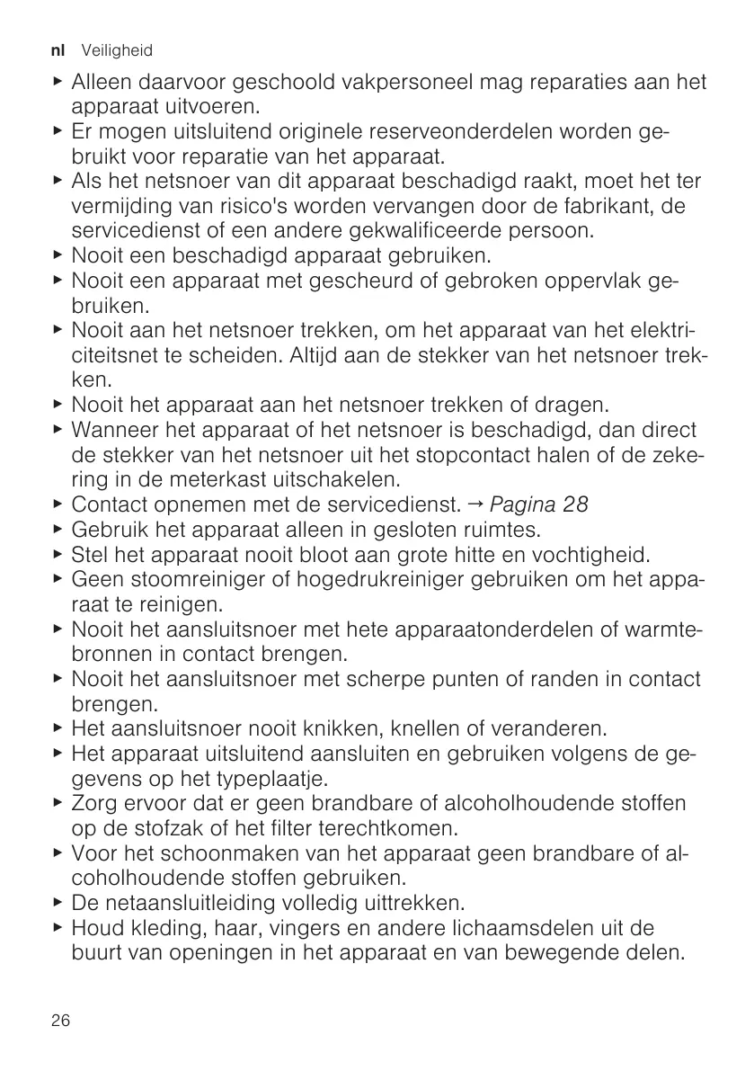 ▶ Alleen daarvoor geschoold vakpersoneel mag reparaties aan het