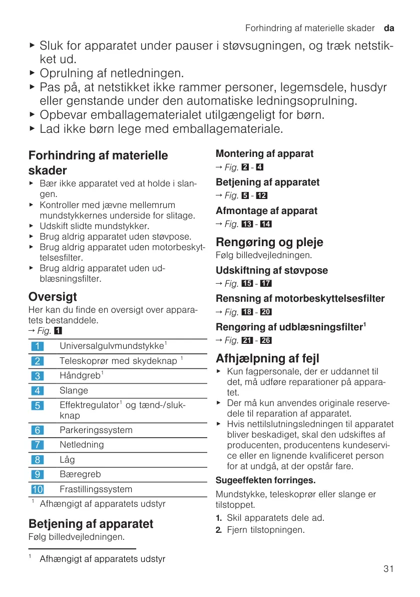 ▶ Sluk for apparatet under pauser i støvsugningen, og træk netstik-