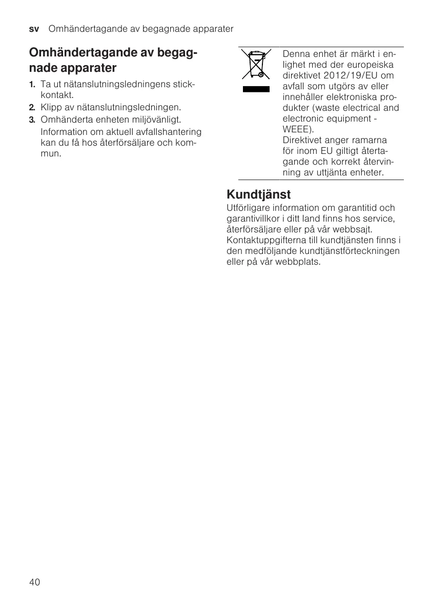 sv Omhändertagande av begagnade apparater