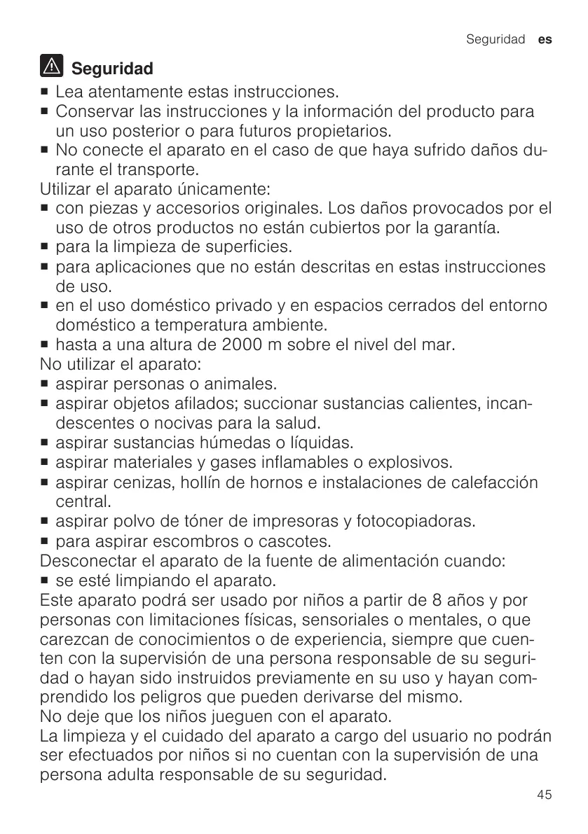 ¡ aspirar sustancias húmedas o líquidas.