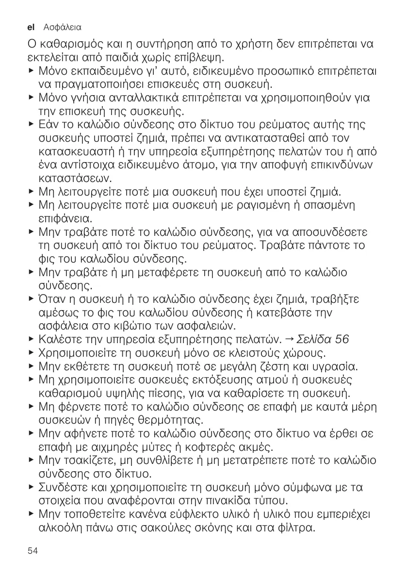 Ο καθαρισμός και η συντήρηση από το χρήστη δεν επιτρέπεται να